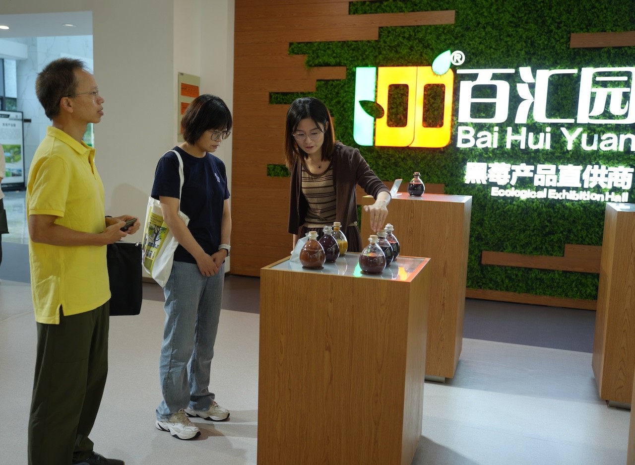 在实地参观黑莓展厅与黑莓小镇露营地过程中,集团行政总监魏娟向大家详细介绍了百汇园在黑莓种植技术、产品深加工以及农旅融合等方面的实践成果,以及百汇园集团通过推动一二三产业融合发展,打造出集观光、采摘、研学、露营、餐饮等功能于一体的黑莓小镇露营地,不仅延伸了产业链,也让消费者得以亲身感受黑莓文化,实现了农业与旅游业的良性互促。